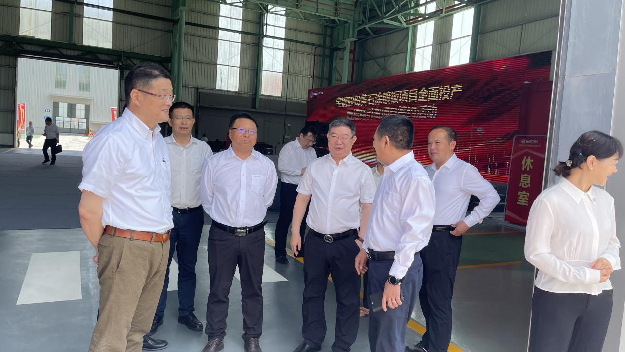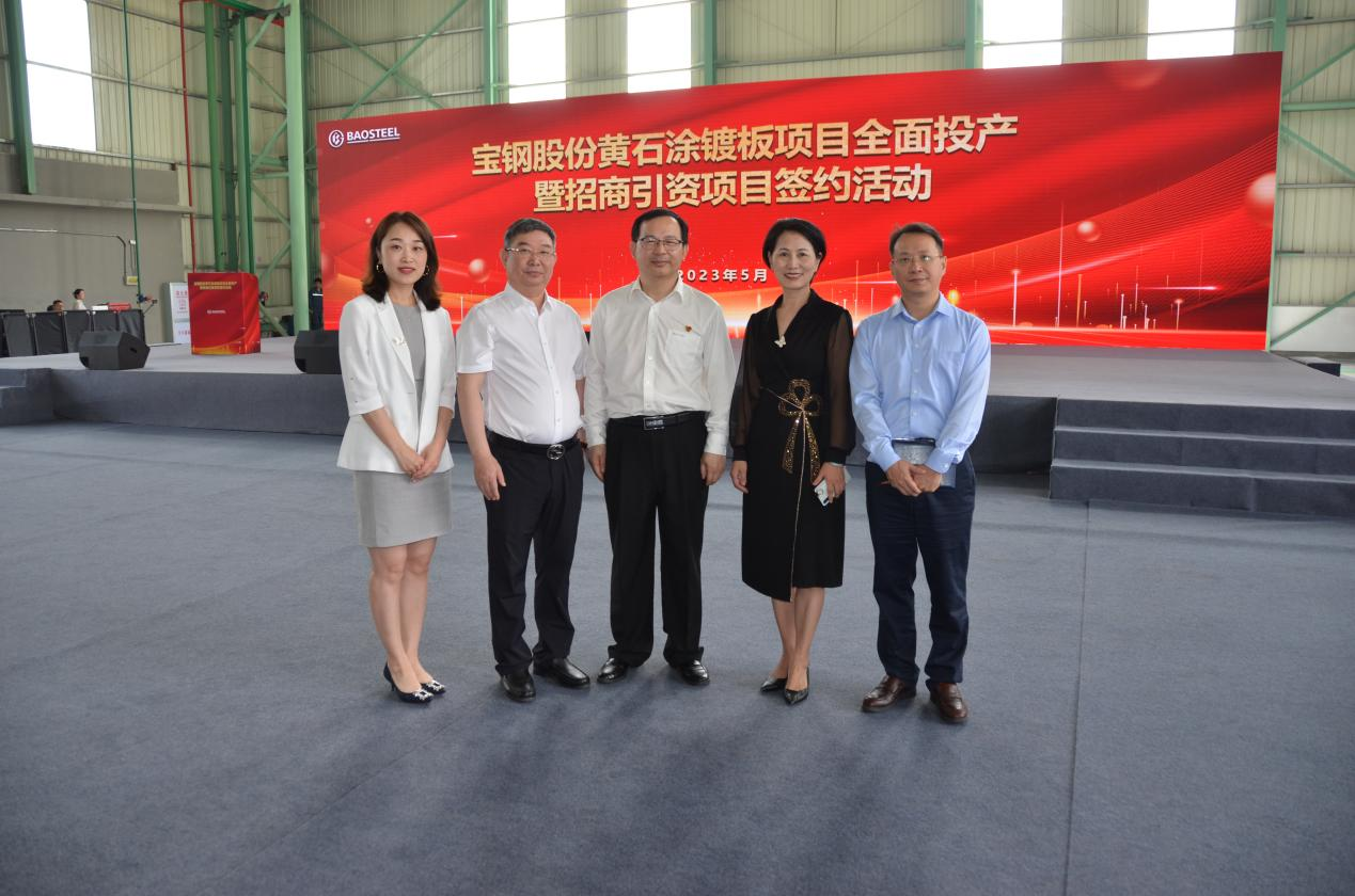 董事长刘国民和宝钢股份黄石涂镀板有限公司总经理助理兼制造部部长刘浩洲(左三)