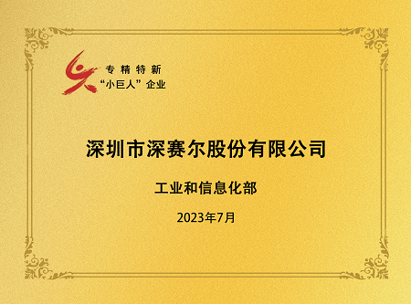深赛尔荣膺国家专精特新“小巨人”称号